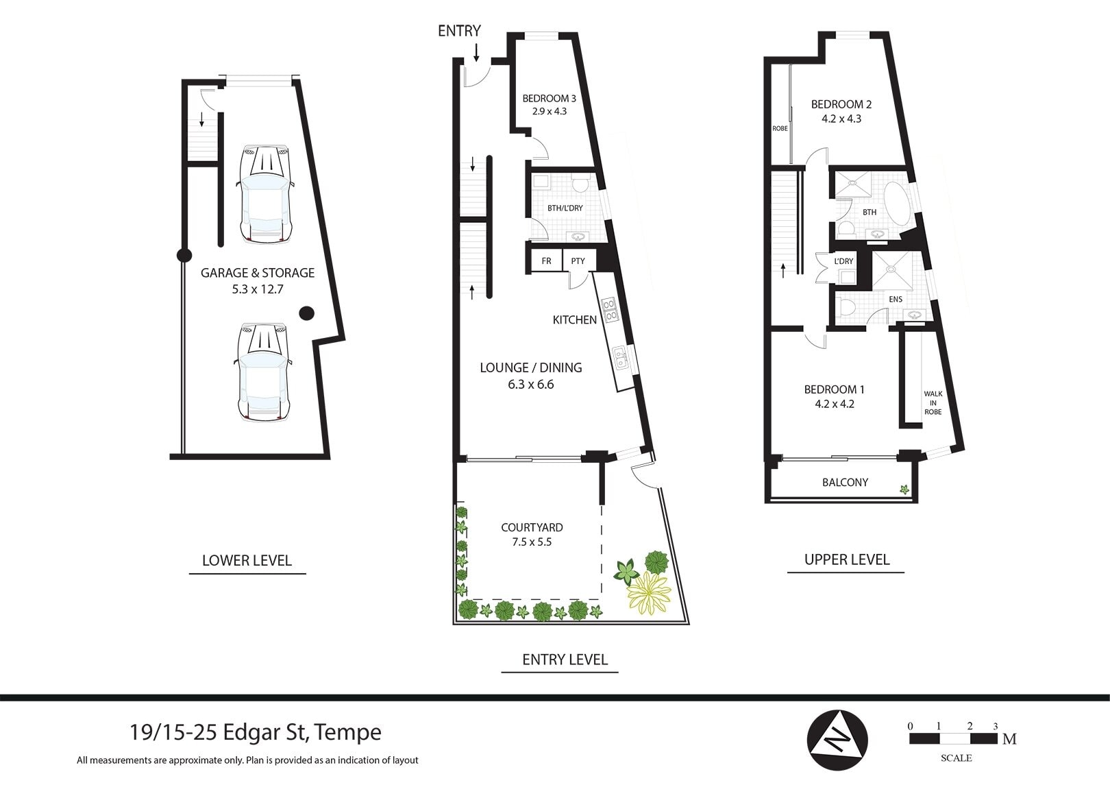 Three bedrooms, three bathrooms, and a full internal laundry